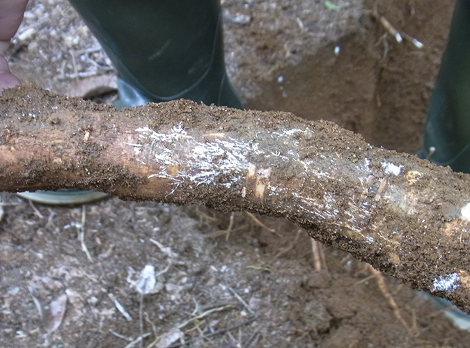 This cutting-edge technology provides a simple visual confirmation of the presence of pathogens in the field without the need for special devices, using a reagent kit based on analyzed DNA sequences of pathogens. The kit enables early detection of white root disease, which infects through pathogens in the soil, to help prevent the spread of infection from tree to tree.